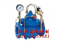 当阀门从进口端给水时,水通过微型过滤器、针阀、单向阀进入主阀控制室,再经过球阀排水至下游。因为针阀开度小于球阀开度,即主阀控制室的排水速度大于进水速度,因此控制室压力降低,作用于主阀盘下端的进口压力打开主阀向下游供水。