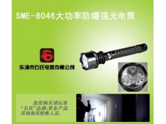 SME-8046led厂家批发大功率手电筒,铝合金强光手电筒,大功率节能强光电筒是石氏电器有限公司设计制造的小型防爆强光照明灯具,品质超群,科技含量高;进口钢化玻璃镜片透光率高,反射器经过特殊配光曲线设计,表面采用高科技表面处理工艺,反光效率高,强光射程可达400米。