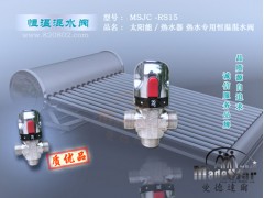MSJC&曼德达尔品牌恒温混合阀TMV(Thermostatic Mixing Valves)是专为热水温控系统研制的配套高端热水工程专用恒温产品,集成有更高端的温显数字恒温控制手柄和恒压恒温内部调节件。RS15热水恒温混合阀无需外接电源,结构紧凑,温度调节自由恒温设定,能够精准的达到节水节能、舒适恒温的效果;这款恒温系列目前广泛应用于太阳能热水器、燃气热水器、电热水器、空气能热泵、地源热泵、锅炉等集中供热水恒温系统工程等水压经常变化的复杂环境(如家庭别墅、宾馆酒店、医院、学校、部队野战洗浴车、豪华游艇、游泳场馆及桑拿洗浴中心等中小型生活热水、公共洗浴用水恒温系统。)。