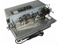 原理及特点: 固体墨轮打码机是一种先进的接触式热打码机。本机采用间歇式自动加热和精密的机械相结合,可根据用户需要,任意选择打码内容与打码位置,并可设定打码张数,打码速度快,性能可靠,字迹清晰,打码动作及计数采用光电开关控制。