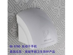 庄臣QS-8760干手机适用于各类工厂、宾馆、饭店、写字楼、医院、银行、学校、展览馆、体育馆、机场、车站等场所使用。