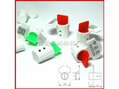 产品说明: 封条总长280MM,采用PP塑料一次注塑成型,封条内夹有钢片,产品在零下45度,零上50度不变型,表面采用冲压或激光打标志、流水号、条码,锁杆为φ2.5圆杆,施封时随意调节抽紧,颜色可制成红、蓝、绿、黄,也可根据用户要求制作成其他颜色等。
