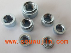 S系列、CLS系列、SP系列压铆螺母,为安装内螺纹到清密的金属板材产品上,提供了简单的方法,起到了可靠的固定作用,小而精巧的螺母,使板材一边嵌平加工完美,安装时,只需将螺母插入金属板的孔中,以压力完成镶嵌坚固功能。