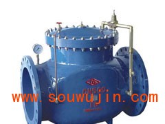 200X活塞式可调式减压阀,使用于管道通径大于500mm的水系统中,根据下游所需的压力,将上游不稳定的高压介质,减压到符合规定的下游压力。该规定压力事先在导阀上设定,通过导阀的启闭来控制活塞的上下运动,从而达到下游压力的稳定。
