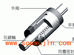 YNK滚珠花键是利用装在花键内的滚珠,在精密研磨的滚动沟槽中,同时进行平滑滚动,及传递力矩。采用MOTION独特的接触点设计,具有更大的接触角度(40°),除了具有高度的灵敏性外能更大幅提升负载的能力,适用于震动冲击负荷作用过大、定位精度要求高以及需要高速运动性能的环境,在这类环境下也能发挥有效的作用。同时,即时代替直线滚珠衬套使用时,因在轴颈相同的情况下,YNK滚珠花键所具有的额定负荷是线性衬套的十几倍,所以能使设计变得十分小巧。即使在悬臂负荷、力矩等作用的情况下,也可安全使用,且具有高耐用性。