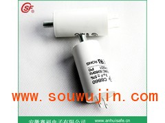 本电容器采用边缘加厚的金属化锌铝膜作为电极和介质。其内部的元器件被阻燃环氧树脂包裹。本产品的外形为圆柱形,ABS或PBT塑料外壳。具有良好的稳定性和防潮性。