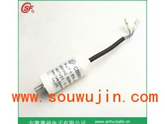 本电容器采用边缘加厚的金属化锌铝膜作为电极和介质。其内部的元器件被阻燃环氧树脂包裹。本产品的外形为圆柱形,ABS或PBT塑料外壳。具有良好的稳定性和防潮性。