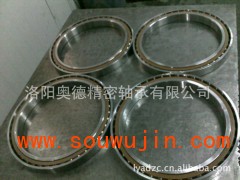 用于磨床高速磨削主轴的角接触球轴承除上述要求外,还要求轴承在极高的转速下运转。为了减少高速时球在离心力和陀螺力矩作用下引起的旋转滑动和自旋,在设计时常采用较小直径的钢球。对于d•n 值高,寿命长的高速主轴还可采用比重轻,耐磨性好的陶瓷球取代钢球,以达到更完美的性能。本公司可依据用户要求提供这种高性能陶瓷球混合轴承。高速磨削主轴常用的轴承类型是B70C、B70CA系列,在重载时也可采用B72C、B72CA系列。保持架采用高强度酚醛夹布管制造,外圈挡边引导可使轴承获得良好的润滑。