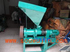 三、切粒部分,切粒大小由出粒孔而定,要想膨化一般4.5公分,孔子开4-5个,要想产量高,不膨化可开10-15个孔,小电机可前后调整,刀在顺向,下料时最好先用3-5市斤饲料加多水做起头。