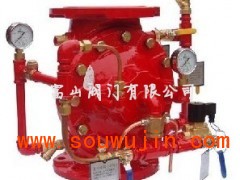 雨淋阀隔膜腔内水压的高低控制着雨淋阀的启闭,当通过打开电磁阀或由工作人员打开紧急手动快开阀使隔膜腔内水压下降到一定值时,隔膜被供水压力顶开,水流进入系统侧管网灭火。