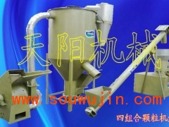 220B平模小型颗粒饲料机组集饲料粉碎、混合、提升、制粒等功能为一体,是借鉴国内外颗粒成型机械的先进技术生产的饲料加工设备,可以把农作物秸秆通过粉碎后与玉米粉、豆饼、麸皮、维生素、微量元素等原料混合配制成全价粉料,经颗粒饲料机身的摩擦自动升温,使物料糊化、熟化、制粒一次完成,加工过程中饲料原料不需要加水和通蒸气,自动送料、进料迅速、出料顺畅,干进干出,颗粒粗细可根据用户的需要,在1.8mm-12mm之内调节,适于加工猪、牛、羊、兔、鸡、鸭、鱼等颗粒饲料,压制成的饲料颗粒,营养丰富,使禽畜采食量大增,生长加快。既减少粮食投入,节省了饲料成本,又增加了饲养场(户)的收入,是中型饲料厂及各饲养场生产粉状料、浓缩料、全价饲料投资少,见效快,自动化程度较高的饲料机械。天阳颗粒饲料机组由粉碎机、旋流分离器、输送机、混料机、颗粒饲料机组成,93KWP-220B型总装机功率:23KW,工作效率:6-10吨/日,设备价格:19660元/套,随机免费提供秸杆生化饲料技术及猪、牛、羊、鸡、兔、鱼等不同生长期所需的各种秸秆全价饲料的配方。天阳机械公司张杰欢迎致电13181307932 18953731698 QQ531079582咨询