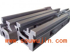 四、T型槽地轨(地轨)的材质:优质高强度灰口铸铁HT200-250,工作面硬度为HB170-240,铸件经过两次人工退火600℃-700℃或自然时效2-3年,完全去除内应力,精度稳定,耐磨性能好。