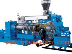 此机组操作非常简单(图)塑料己成为世界上四大通用材料之一,随着塑料制品领域的不断扩大,对塑料制品的品质要求越来越高。单纯的对塑料制品填充无机粉体,己不适应当前塑料发展的形势。越来越多的塑料生产厂家和不同的塑料制品应用领域,要求塑料制品即外观光泽好、韧性好、卫生性能好、比重小、成本低等,还要保持基本的透明度、光泽度。面对塑料制品不断创新升级,我公司研究人员,通过多次的研究试验,成功的开发出新型滑石粉母料造粒机。滑石粉造粒机生产的透明填充母料,折光率为1.5-1.6,基本符合PP、PE折光率1.43-1.63。添加量5-30%,该母料比重小,热封性好,拉伸強度大。最新合成的多元共混透明填充配方,基本消除了吹膜时引膜杆白色现象。透明填充母料,适应于热塑型聚烯烃,如;PP、LDPE、HDPE、LLDPE、EVA、生物降解塑料、再生塑料等等。如:塑料桶,簿膜、餐具、板材、片材、管材、异型材、挤出、注塑、吹塑,流延等。 滑石粉高填充母粒造粒机:密炼机----提升机------锥双喂料机---------单螺杆造粒机-------- -对吹热切机头-----一级旋风分离器---------二级旋风分离器-------加长风冷振动筛------成品料;仓欢迎来电咨询,价格优惠。