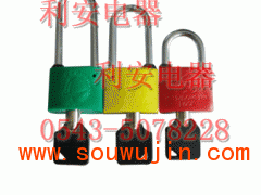 2:锁体材质为ABS工程塑料,耐用,轻巧,绝缘,防紫外线,不含硅,阻燃,颜色艳丽,红、蓝、绿,白,黄,或定做其他颜色。锁体材质还可以做锌镁合金或者工业黄铜,永不生锈,室外使用寿命三年以上,室内使用寿命五年以上。