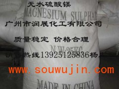 性质:白色斜方晶系。密度2.66g/cm3。熔点1124`C.易溶于水,微溶于甘油、乙醚,不溶于丙酮。在不同温度下,与水可生成一、二、四、六、七、十二水合物。加热到1160℃,分解为氧化镁、氧气、二氧化硫及三氧化硫。易吸潮。应密闭保存。由七水硫酸镁先在70℃下脱水生成一水硫酸镁,再在500℃以上干燥脱水至无水盐。