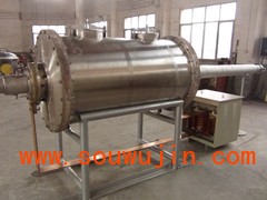 设备由炉体、碳管、保温层、进出料端、水冷管路、控制系统组成、炕壳采用夹层隔热,并选用优质的保温材料,从而提高了设备的节能性,控制部分采用红外线测控温,推舟机构选用先进变频调速推进,具有连续运行、生产效率高等特点。