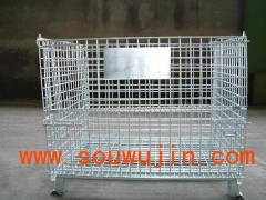 仓储笼,移动仓储笼,货架仓储笼,折叠式仓储笼,超市仓储笼,货架,外销仓储笼,内部仓储笼,金属仓储笼,阁楼货架,线棒,流利条,欧式仓储笼,常规仓储笼采用强力钢丝焊接而成,底部以U型焊接,使结构更坚固。在仓储笼内配置纸板类保护物,可存放容易划伤表面的物料,配合搬运设备,可使用在运输、装卸、存储等物流环节中。
