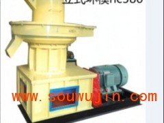 物料通过进料口进入到转动着的料盆内,在离心力作用下,使得物料不断地甩向压模的内壁面上,形成均匀的环形料层,这一环形料层被带入到压模和滚轮的接触面上,经过压模和滚轮强烈挤压,呈圆柱状从模孔中挤出,并被固定在罩壳上的切刀切断成长度均匀的颗粒。