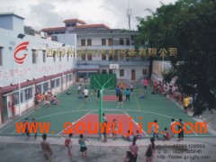 我公司是一家主要生产篮球架、健身器材,经营塑胶球场、硅PU塑胶球场、丙烯酸球场,塑胶跑道及地坪漆的企业。(弹性层→加弹层→面层→划线)