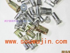 又称铆螺母,拉帽,瞬间拉帽,用于各类金属板材、管材等制造工业的紧固领域,目前广泛地使用在汽车、航空、铁道、制冷、电梯、开关、仪器、家具、装饰等机电和轻工产品的装配上。为解决金属薄板、薄管焊接螺母易熔,攻内螺纹易滑牙等缺点而开发,它不需要攻内螺纹,不需要焊接螺母、铆接牢固效率高、使用方便。